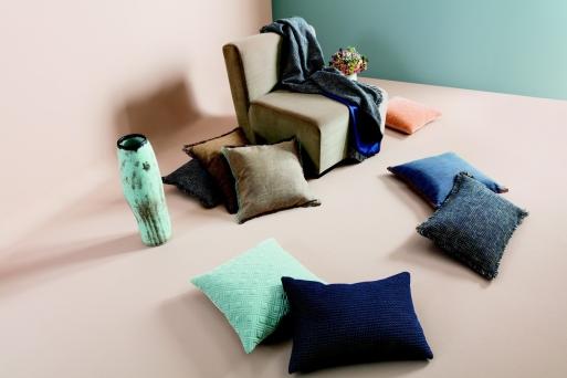 Les matériaux sont atténuants et de préférence d'origine naturelle. La laine est un matériau apprécié, mais le lin et les looks lin sont aussi à la mode. La finition est le plus souvent mate, souvent aussi altérée et légèrement nostalgique. Nous voyons aussi le cuir, la pierre naturelle, le bois et tous les matériaux ayant une structure claire.
