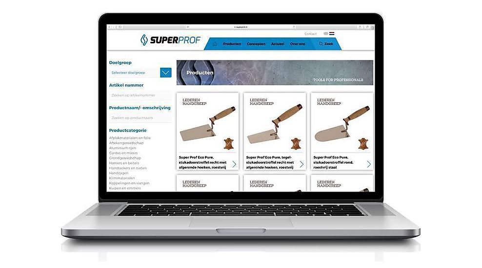 In de nieuwe online productcatalogus van Super Prof vindt u professioneel handgereedschap, bouwgerelateerde artikelen, Be-Wear werkkleding, veiligheidsschoenen en persoonlijke beschermingsmiddelen (PBM). Met ruim 2000 producten heeft Super Prof een breed assortiment voor de vakman. Het gamma is opgedeeld in acht verschillende doelgroepen: