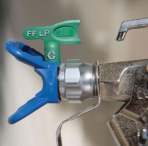 Een airless verfspuittoestel stuwt de verf onder hoge druk (tot 350 bar) door een smalle spuitopening aan de spuittip. De spuittip zorgt ervoor dat de verf verneveld wordt bij een bepaalde spuitbreedte en doorstroomvolume. Graco’s nieuwe RAC X™ FF LP (Fine Finish Low Pressure)-spuittips verspuiten bij een tot 50% lagere druk. Het resultaat is een betere afwerking aangezien de verf gelijkmatiger wordt verspoten. Schilders hebben meer controle over de dikte van de verf en kunnen vermijden dat de verf uitloopt. De spuittips werken bijzonder goed met lage VOS-gehalte materialen die moeilijk vernevelen. De spuittips passen op elk airless verfspuittoestel en alle materialen kunnen ermee verspoten worden.